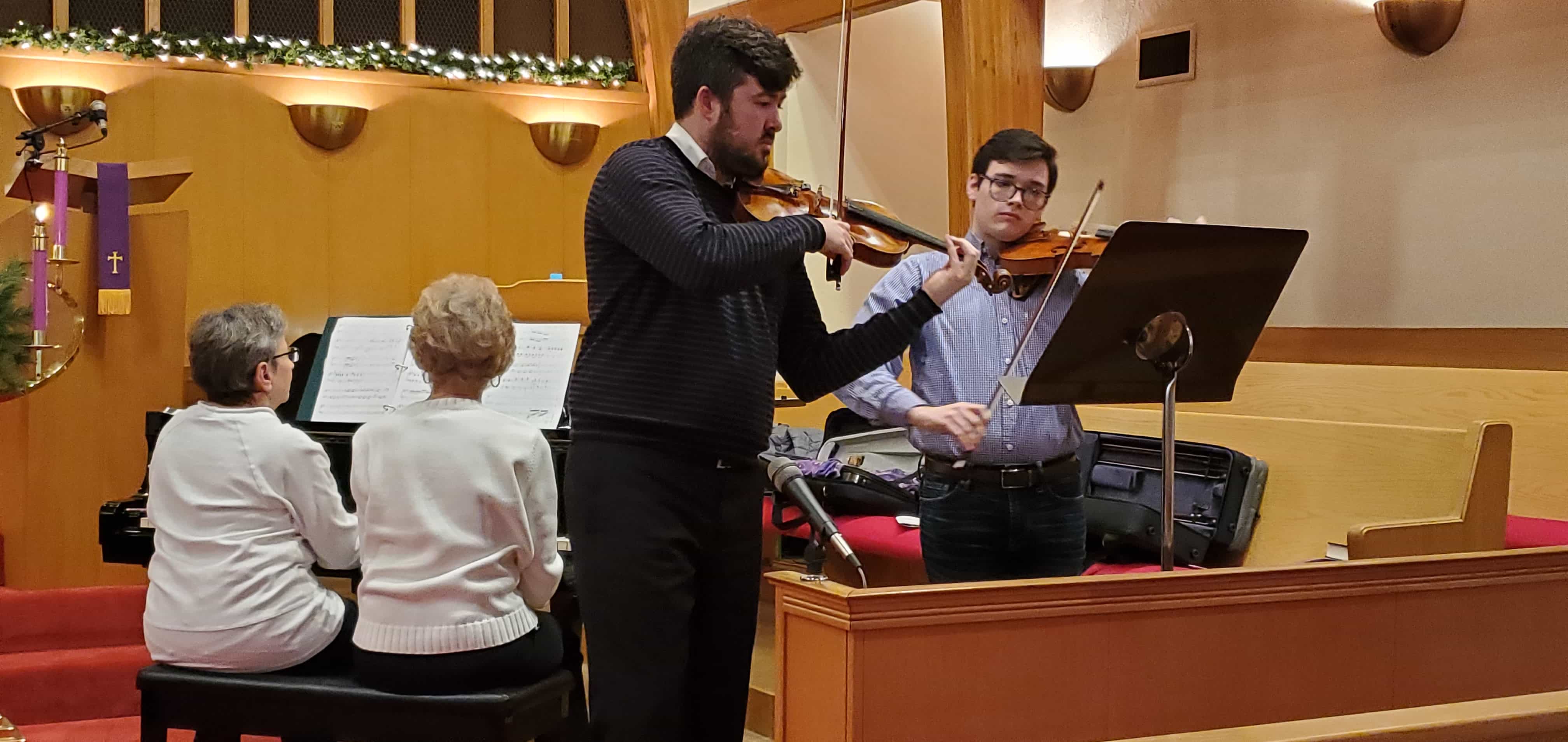 During worship on Sunday, December 8, 2019, the Chancel choir and Handbell Choir along with violin, under the direction of Matthew Bennett, performed "A Celtic Silent Night". It was a special moment of beauty! Thanks to Isaac Champa, violin, for sharing his talents with St. Luke's. If you missed it, you can hear the recording on the video stream of the service on Facebook @stlukesuccindep. Matthew and Isaac, accompanied by Margie Foley, offered special music throughout the service. Don't miss the postlude!